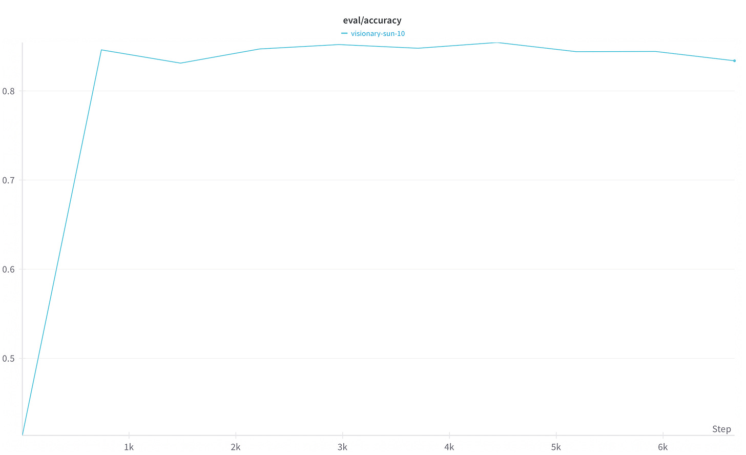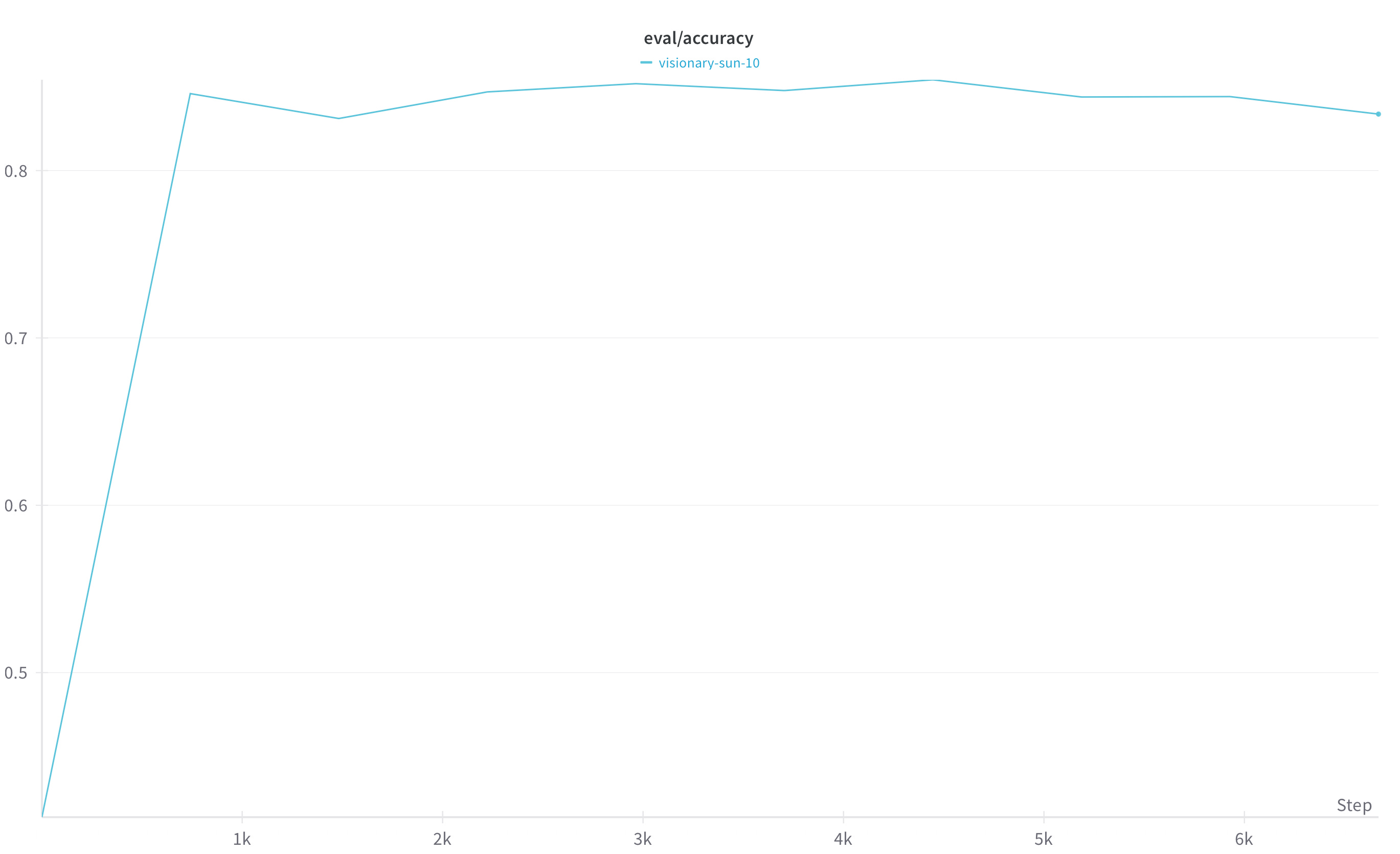 An accuracy of 0.5 indicates that your reward model is no better than random chance at correctly classifying the labels for each reasoning step - look out for this metric when experimenting with your own datasets and models.